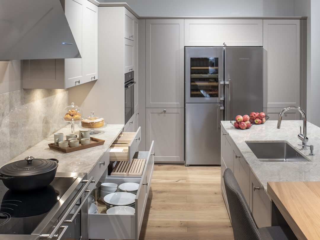 En cocinas pequeñas, la optimización del espacio es fundamental. Los muebles multifuncionales, los armarios altos y los sistemas de almacenamiento inteligentes permiten aprovechar cada centímetro disponible, maximizando la funcionalidad sin sacrificar el estilo.