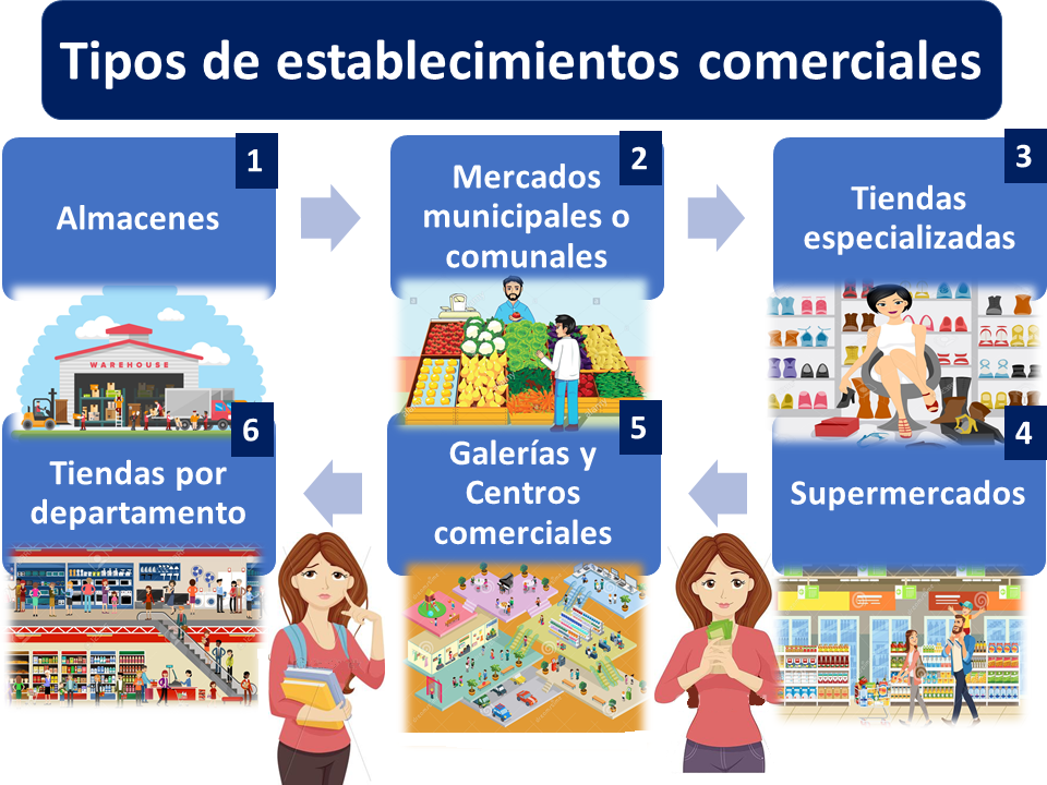 - Mercados: Espacios donde m煤ltiples vendedores ofrecen productos diversos, como alimentos frescos, artesan铆as y ropa. Fomentan la interacci贸n social y el comercio local.