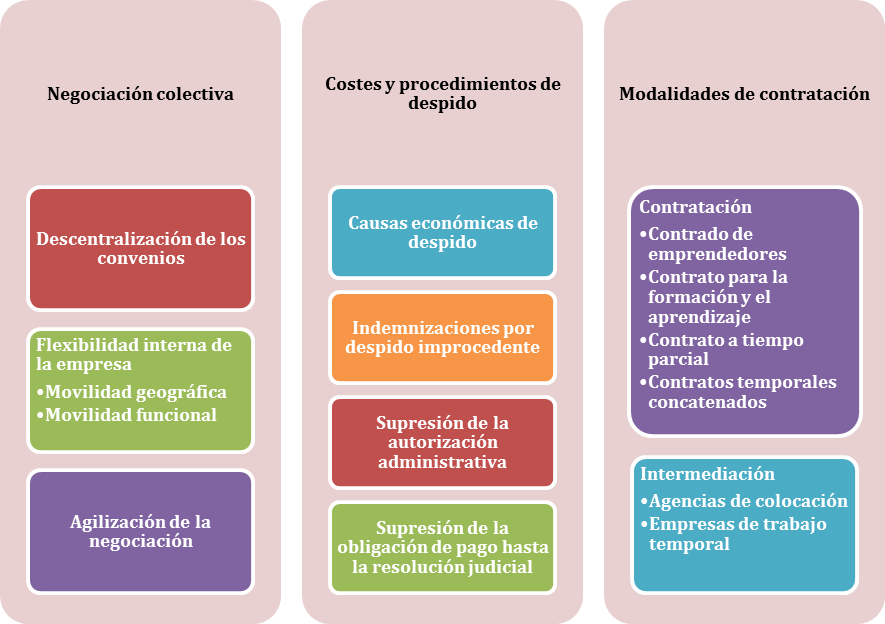 La reforma de 2012 incluy贸 diversas medidas que afectaron a diferentes aspectos del mercado laboral: